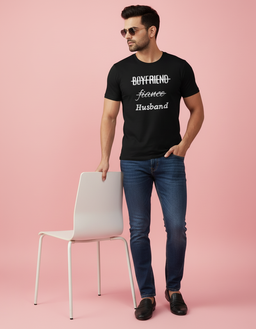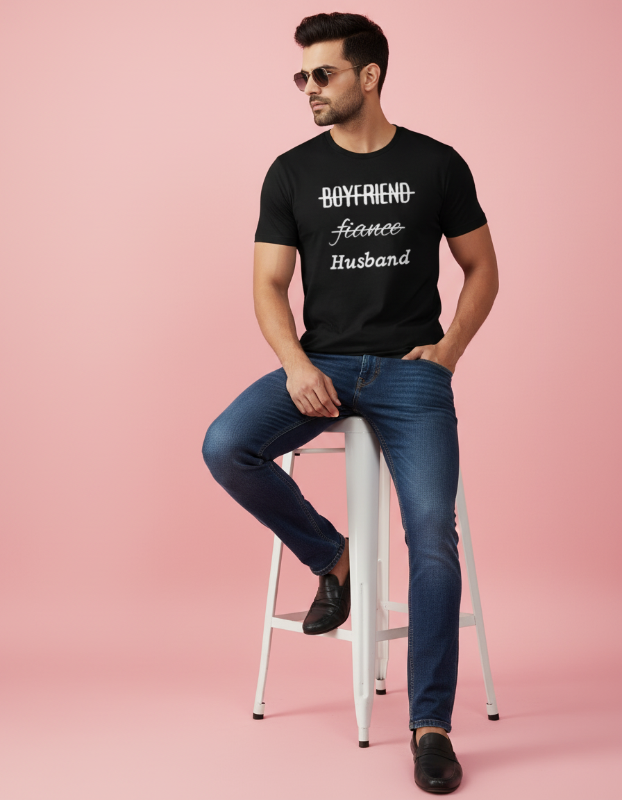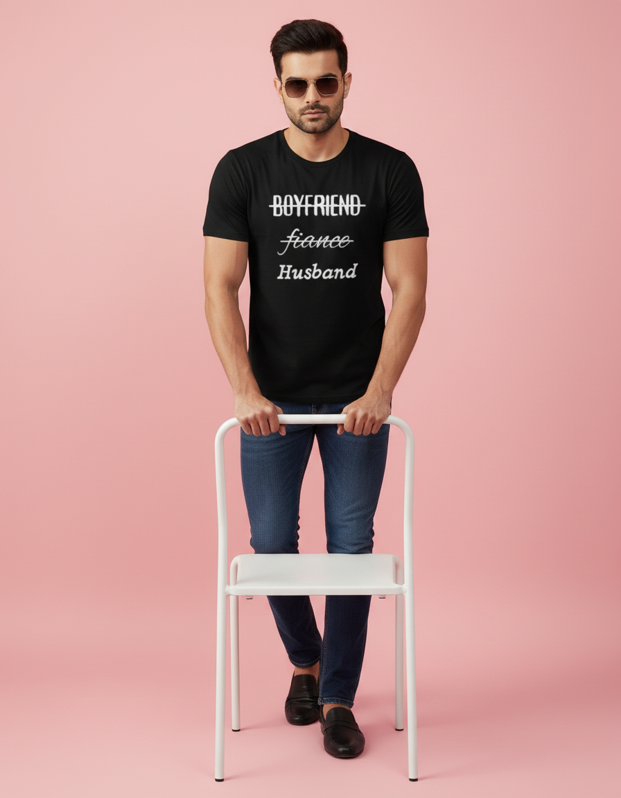 Introducing our exclusive *HUSBAND* Regular Fit T-Shirt, a must-have addition to your wardrobe that perfectly blends style, comfort, and bold statements! ๐
