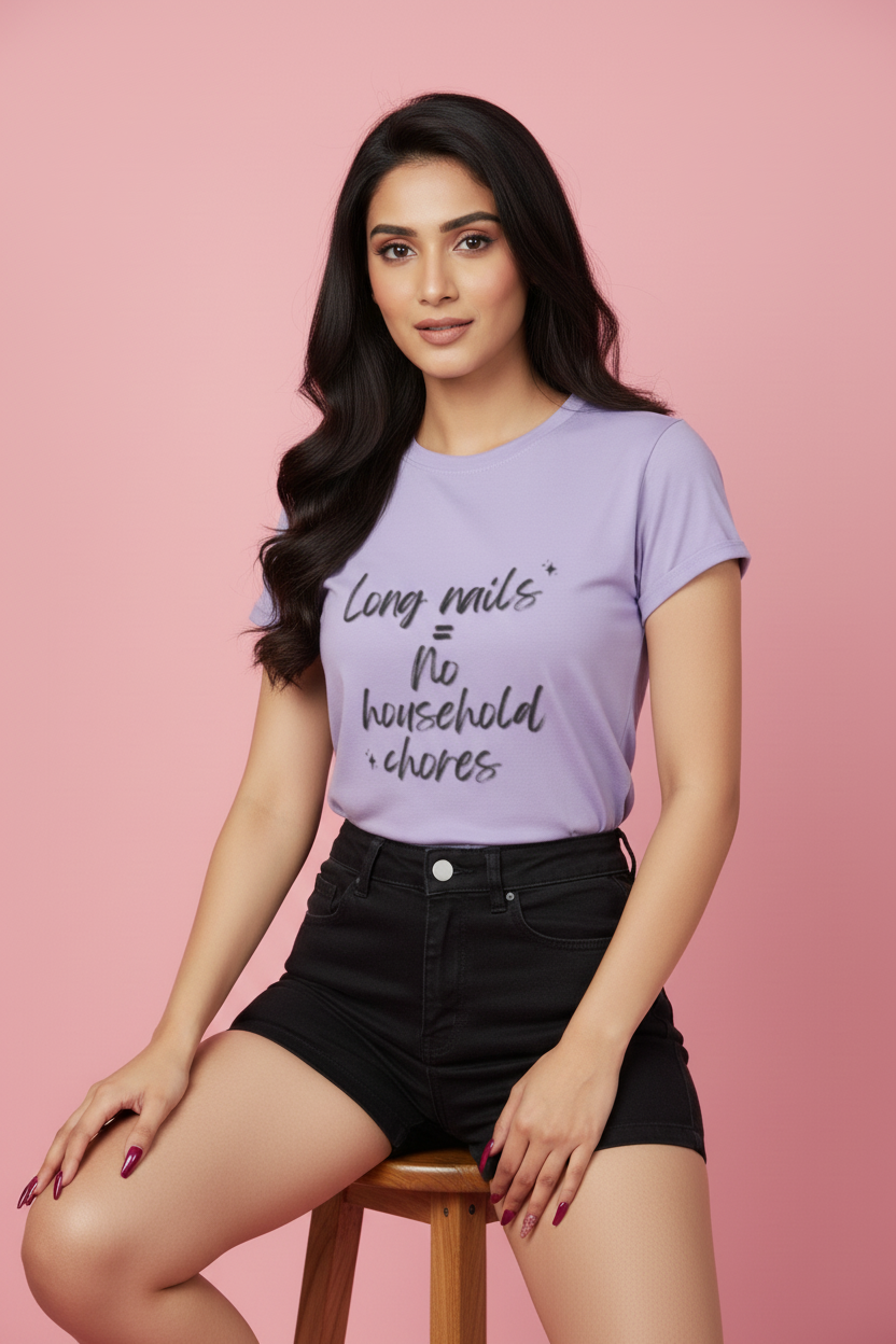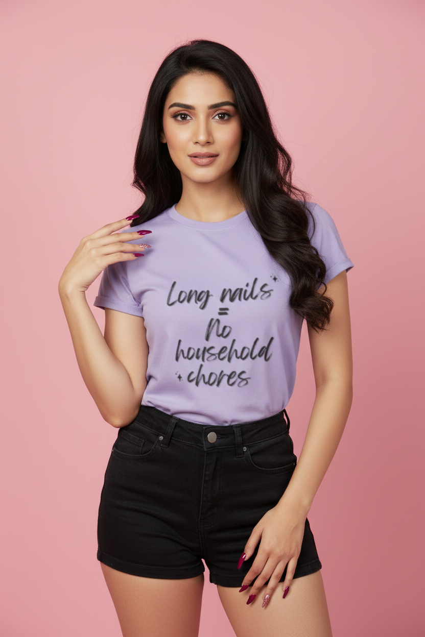 Introducing our exclusive *Long Nails = No Household Chores* Regular Fit T-Shirt, a must-have addition to your wardrobe that perfectly blends style, comfort, and bold statements! ๐