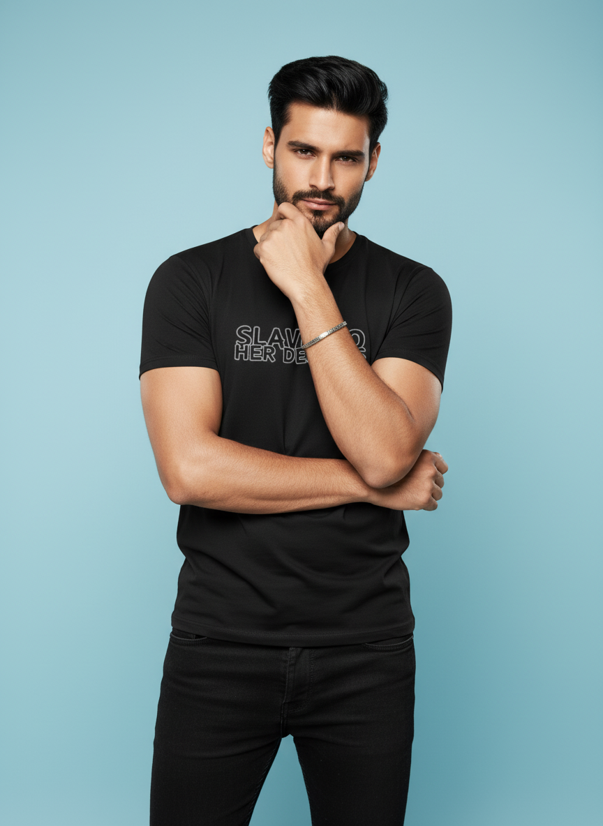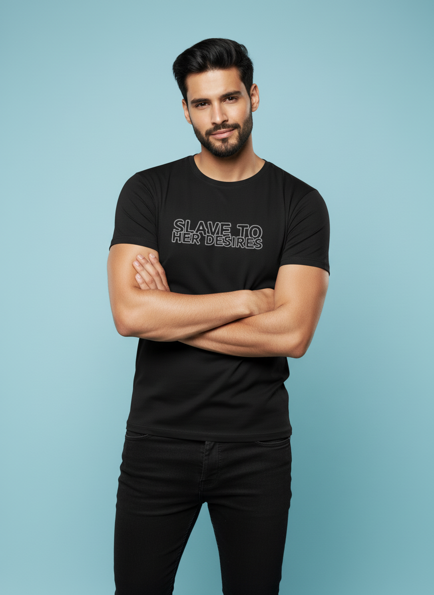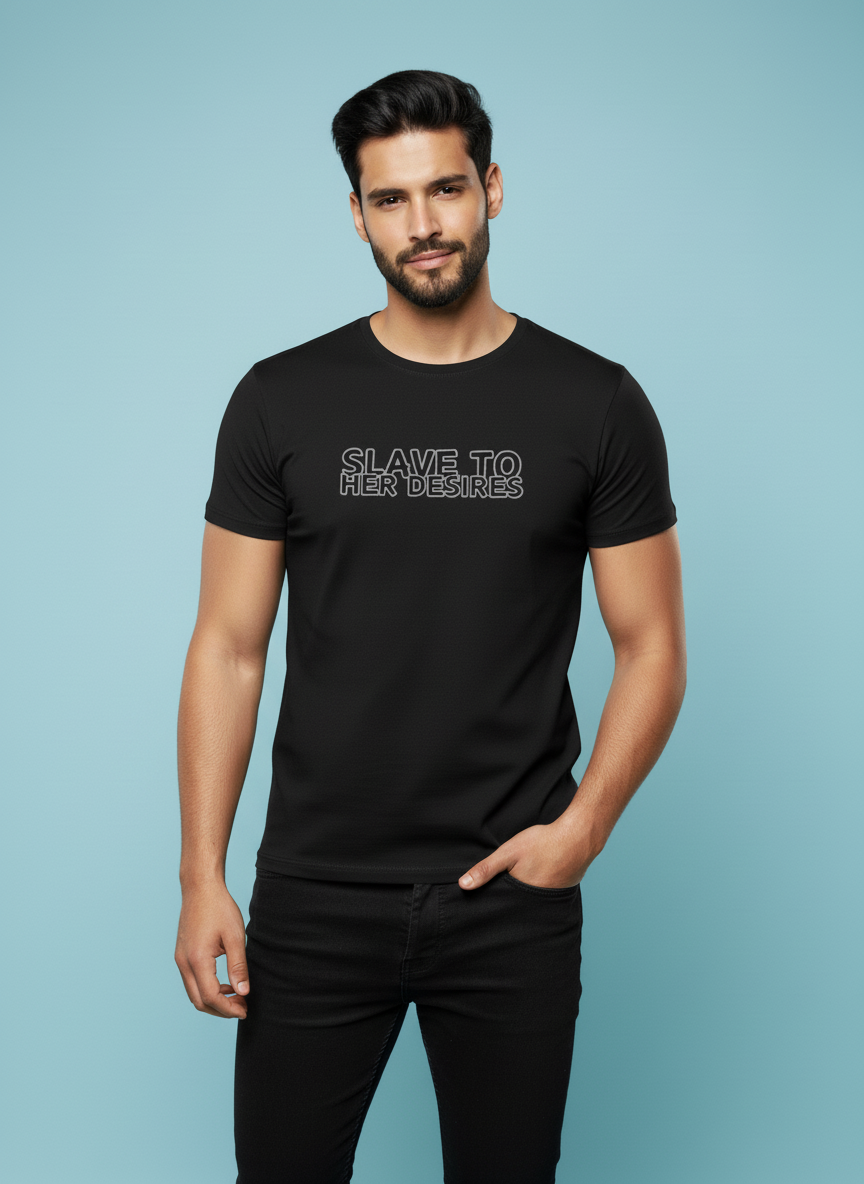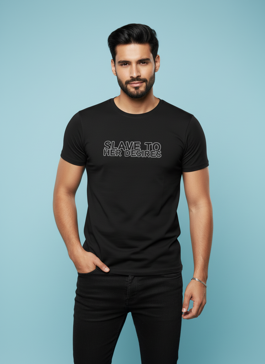 Introducing our exclusive *Slave to her Desires* Regular Fit T-Shirt, a must-have addition to your wardrobe that perfectly blends style, comfort, and bold statements! ๐